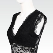 胸元にはブラックの裏地を重ね、安心感とともにレースの艶を引き立てます。